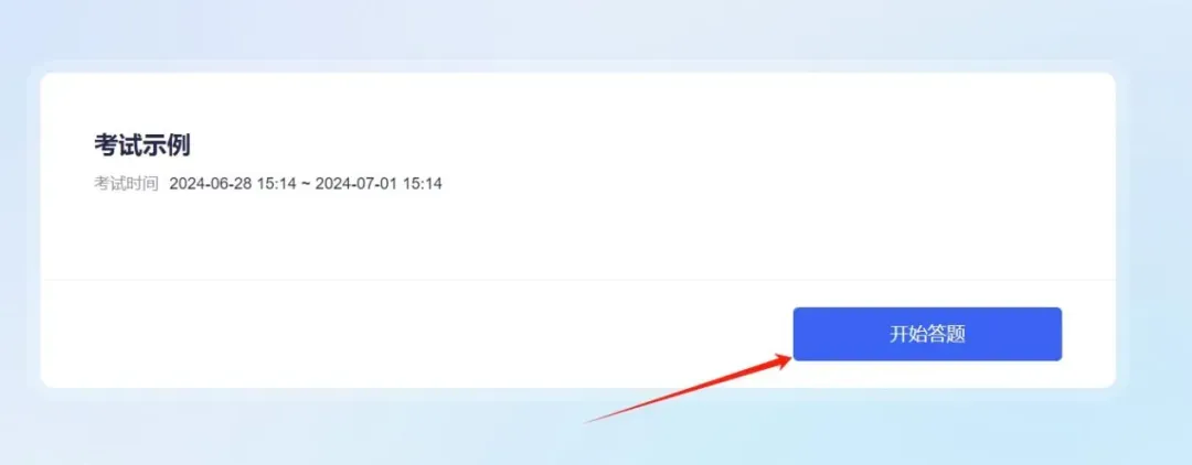 5、进入考试页面后,选择“开始答题”。考试时间及考试时长请留意老师下发的通知信息,以免错过考试时间造成不必要的损失。(图示仅供参考,具体以官方通知为准)
