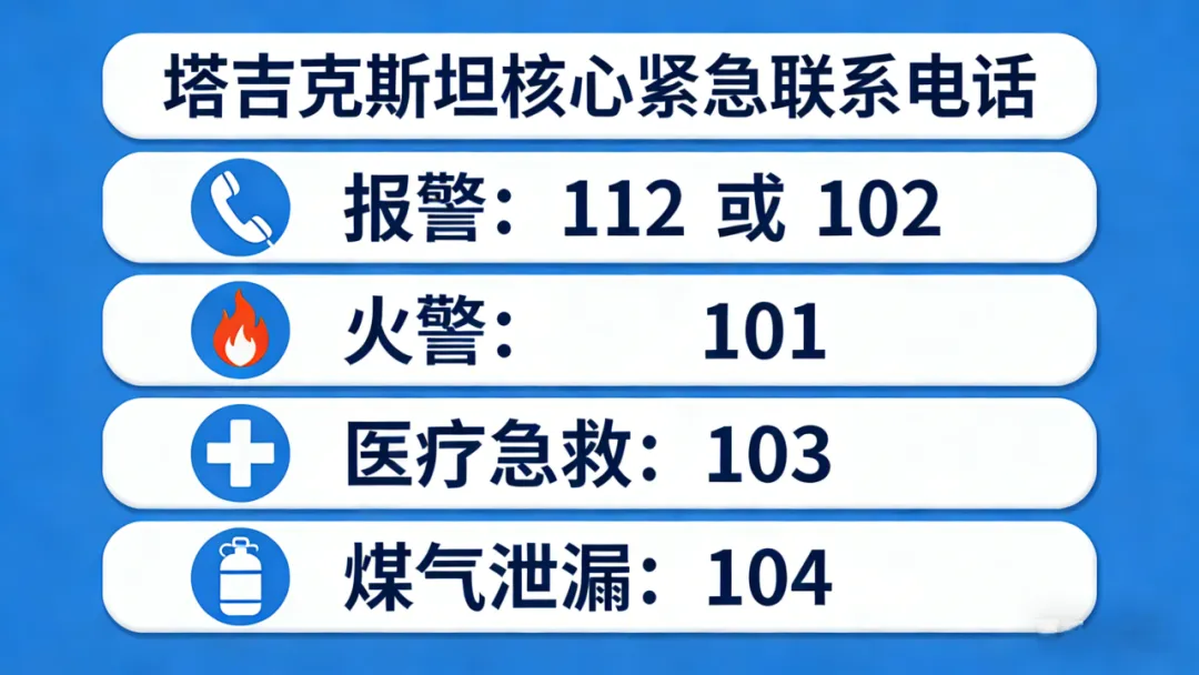 语言障碍:接线员通常只说俄语或塔吉克语。建议接通后,大声重复关键英语单词,如 “Accident”(事故)、“Doctor”(医生)、“Police”(警察),或求助身边懂俄语的人。