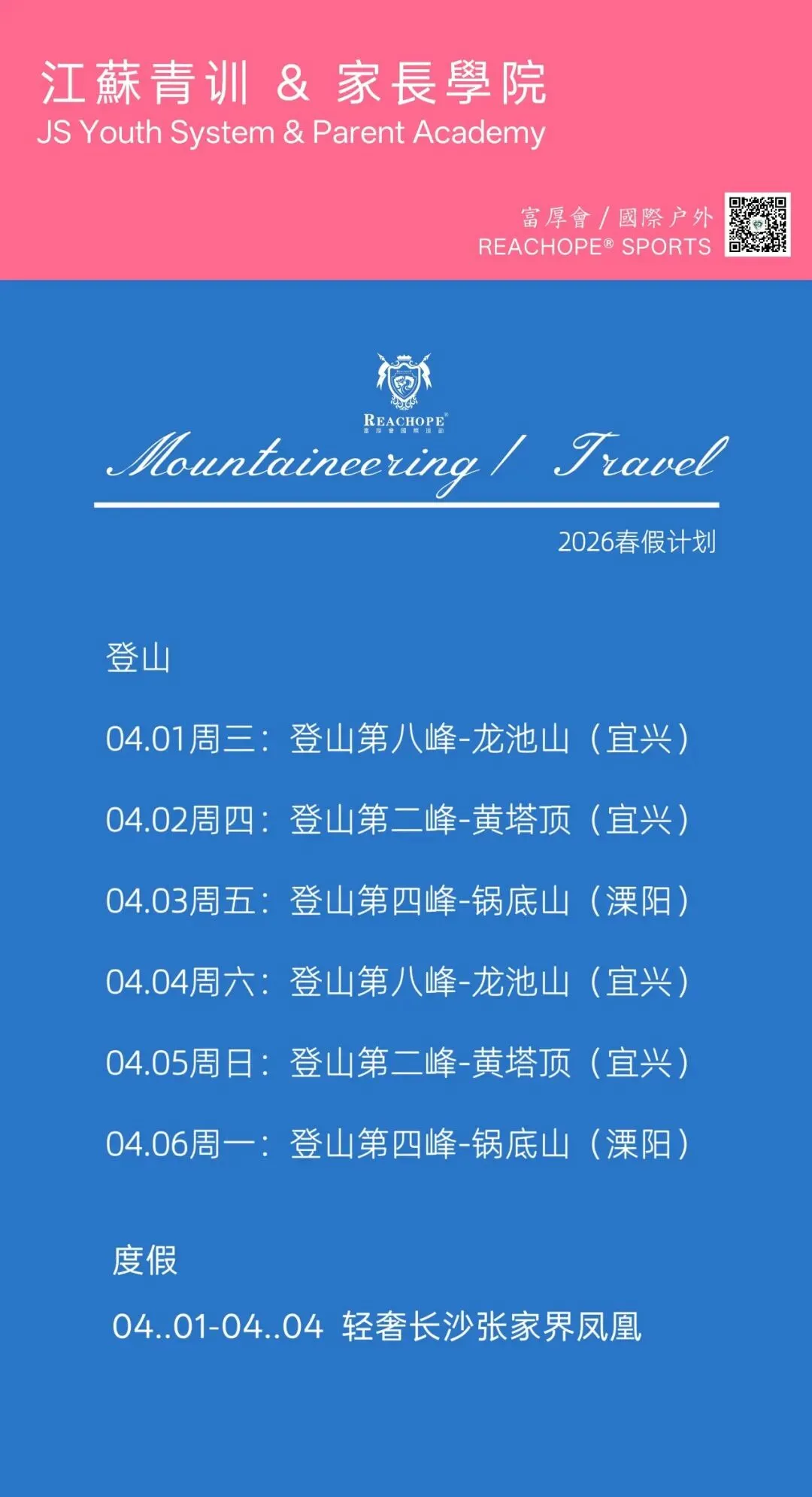 2026春假登山及旅行计划
