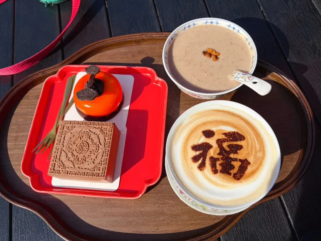 万春金福下午茶在坤宁宫后面。点餐后静静坐一会,抬头看身边的红墙绿瓦,有种穿越时空的错觉。