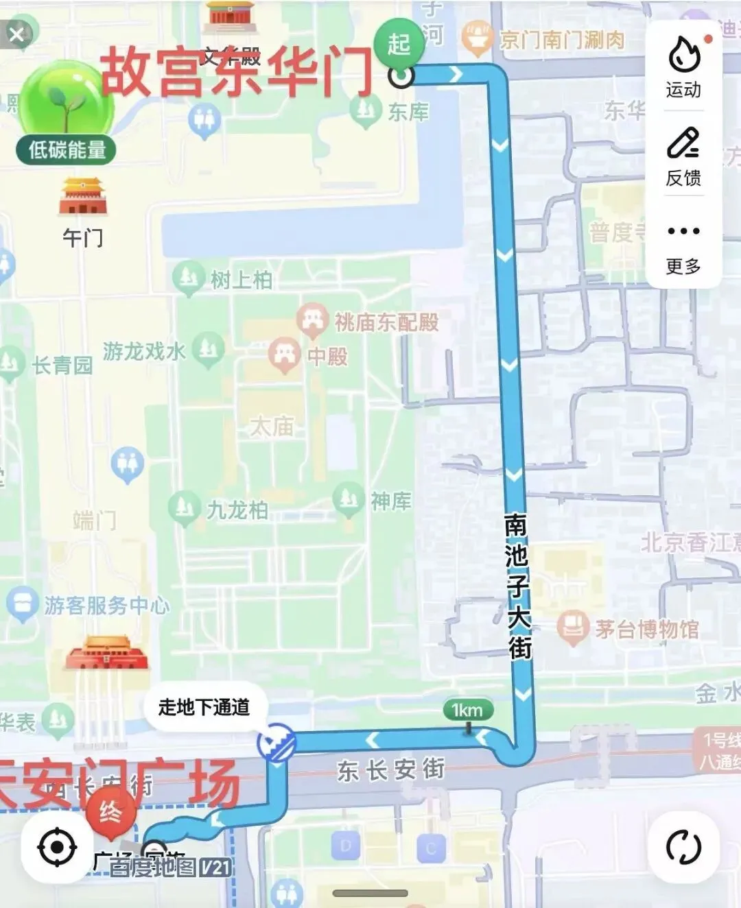 导游发的一张图,如果从故宫出来后想直接去天安门广场,可以走这条路。