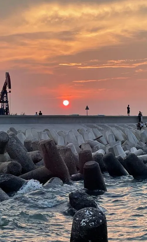孤东海堤这个名字听起来就很荒凉,实际上确实荒凉,一条笔直的大坝伸进渤海湾,两边都是海,退潮的时候能看见海床,涨潮的时候浪直接拍上来。很多人专门开车来这拍日落,不是因为这日落有多特别,是因为这个地方让你体会到什么叫辽阔到压迫感,天和海的界限模糊掉,你站在那条线上,突然明白为什么古人说"念天地之悠悠",那种渺小不是自怜,是清醒。