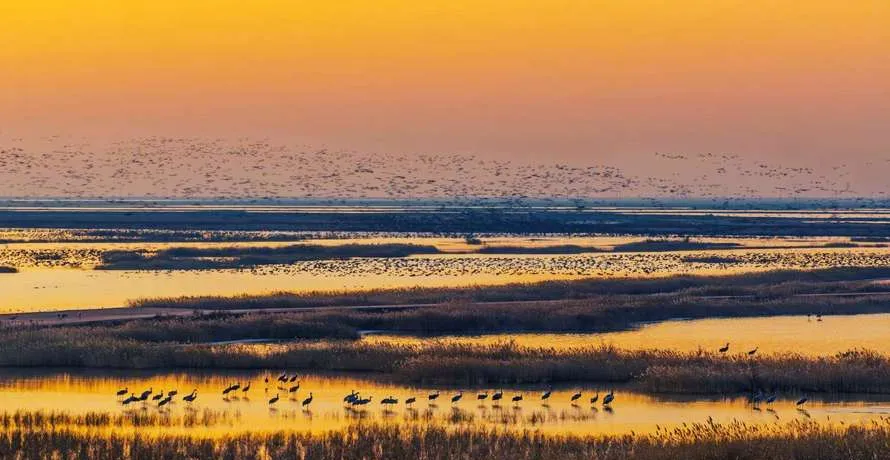 这里最值得看的是新生湿地和鸟类天堂,每年四五月份和十月前后,几百种候鸟路过这里,黑嘴鸥、东方白鹳、丹顶鹤,密密麻麻铺满滩涂,那场面不是诗意,是野性,是大自然最不讲道理的生存法则在你眼前上演。