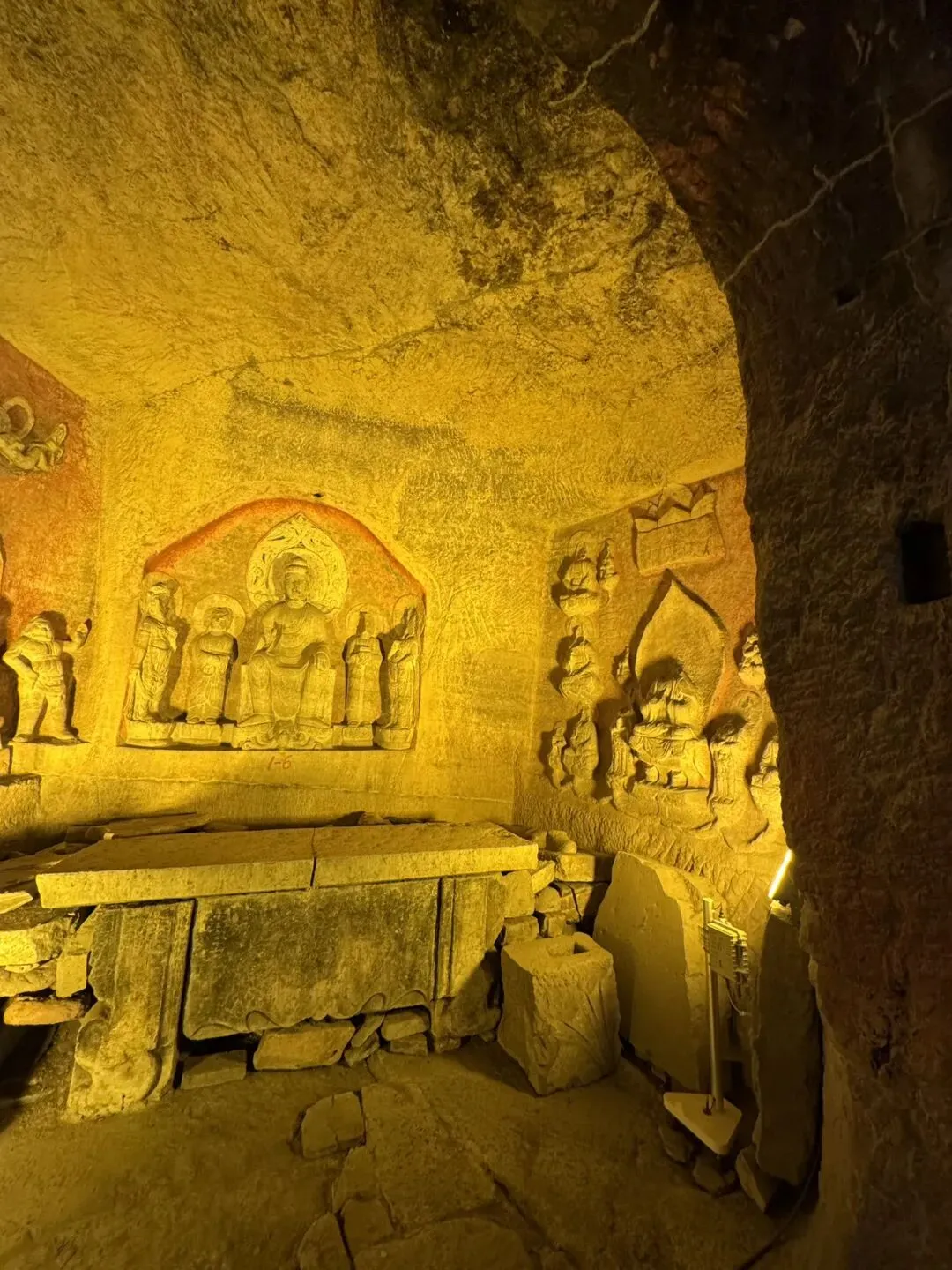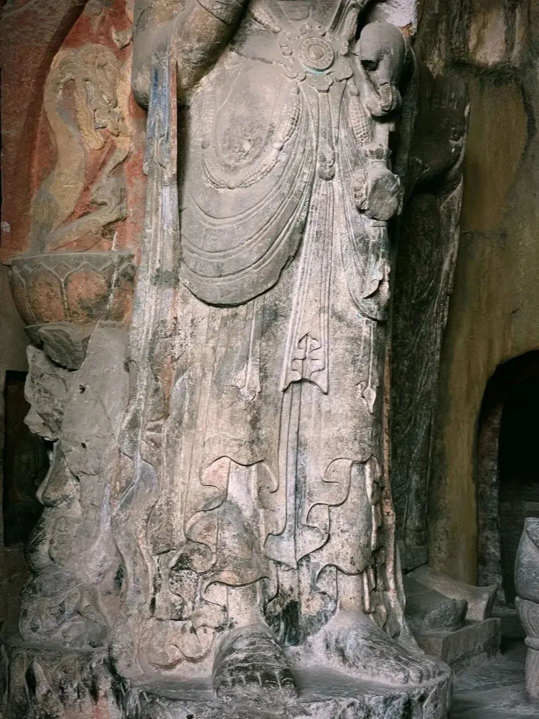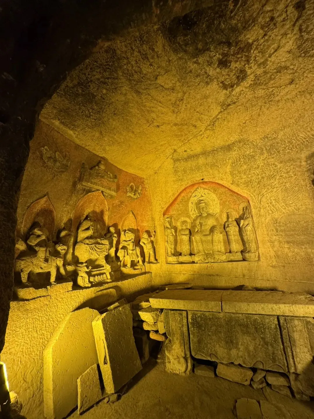 在北响堂山石窟游览了近4个小时,觉得这里明显地内外松弛,游人得以与文物“亲密接触”,凡是人手可及之处,佛像的脚趾、膝盖皆被游客‘盘’出来了深色包浆,在幽暗的洞窟中泛着突兀的光,宛如一道道无法抹去的累累伤痕