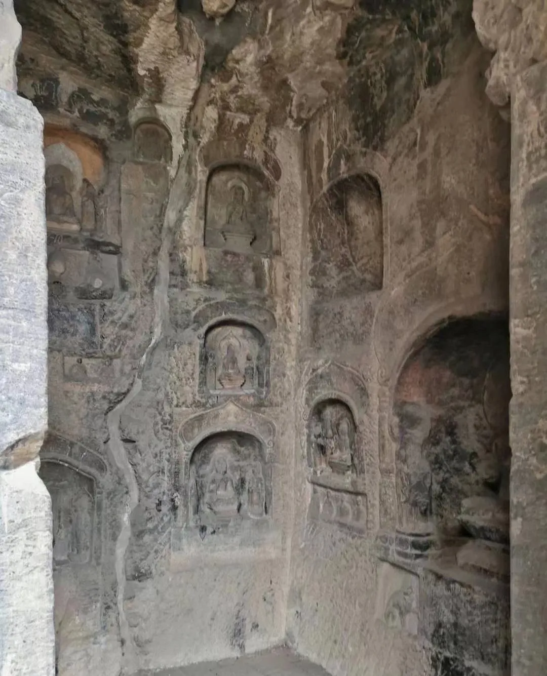 看到这些佛像,想到北齐时期那些无名的精巧的工匠,曾在这里日夜揣摩、雕琢、安放,他们雕刻的时候,内心一定怀着满满的爱恋和精神寄托,不然,越过千年的风霜之后,怎么还能看到佛像面容呈现出的慈祥和悲悯呢?