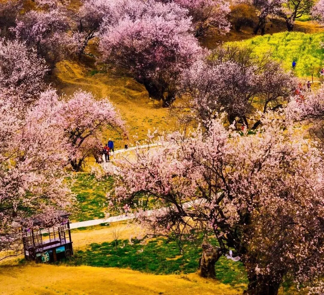 看点: 如果有无人机,一定要飞起来看。尼洋河谷被桃花铺满,像粉色的云霞倾泻在山腰。这里的树龄老、分布密,是那种“乱花渐欲迷人眼”的极致体验。