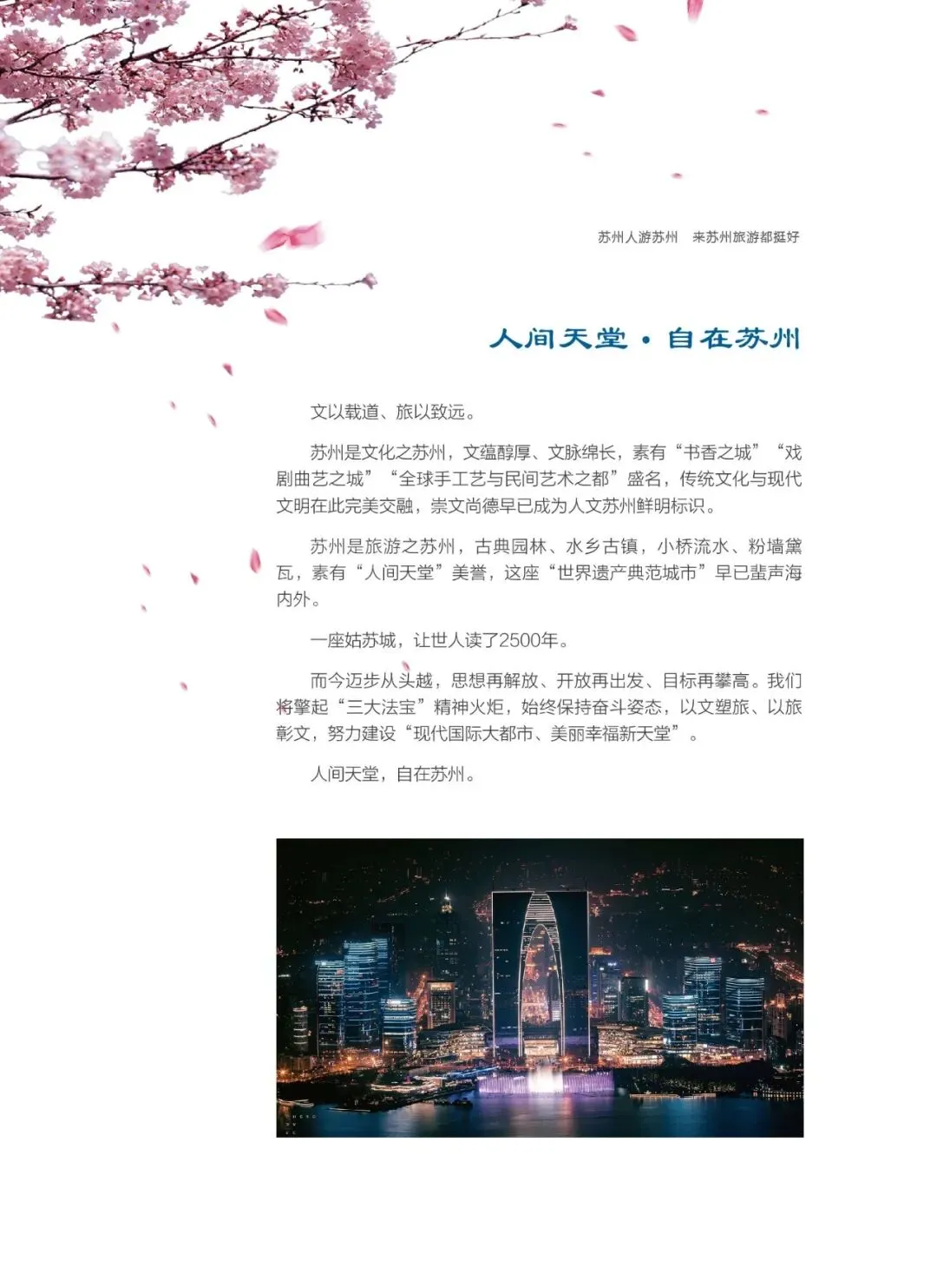- 品牌建设:重点打造“人间天堂、自在苏州”城市旅游品牌,举办苏州国际旅游节、寒山寺新年听钟声等节庆活动,提升城市形象。