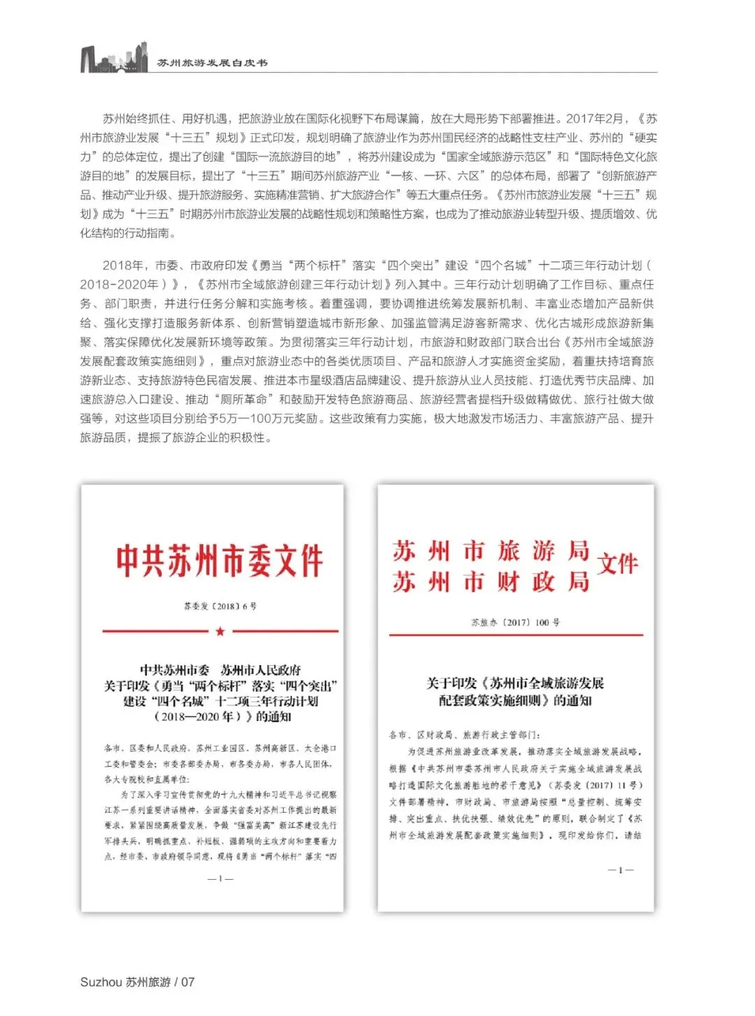 1. 旅游业作为战略性支柱产业:苏州将旅游业视为推动经济转型升级的重要力量,通过政策支持、资源整合和业态创新,不断优化旅游产品供给和提升旅游服务质量。