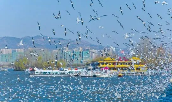 早餐后乘车前往云南昆明滇池海埂大坝,观美丽的“高原明珠”滇池,眺望有“睡美人”山之美称的西山。每年冬季成千上万的红嘴鸥从遥远的西伯利亚飞到这里,吸引了百万游客来参观这壮观的景象,带上小面包,享受和海鸥互动的乐趣。