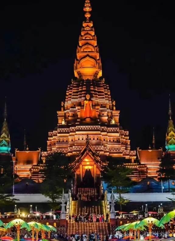 之后游览【勐泐大佛寺】(电瓶车40元/人已含)体验傣族佛教,“南传佛教”的精髓。勐泐大佛寺是在古代傣王朝的皇家寺院“景飘佛寺”的原址上恢复重建的,“景飘佛寺”是傣族历史上一位名叫拨龙的傣王为纪念病故的王妃南纱维扁而修建。勐泐大佛寺,占地面积400亩,佛寺依山而建,落差达122.8米,呈坐佛形。