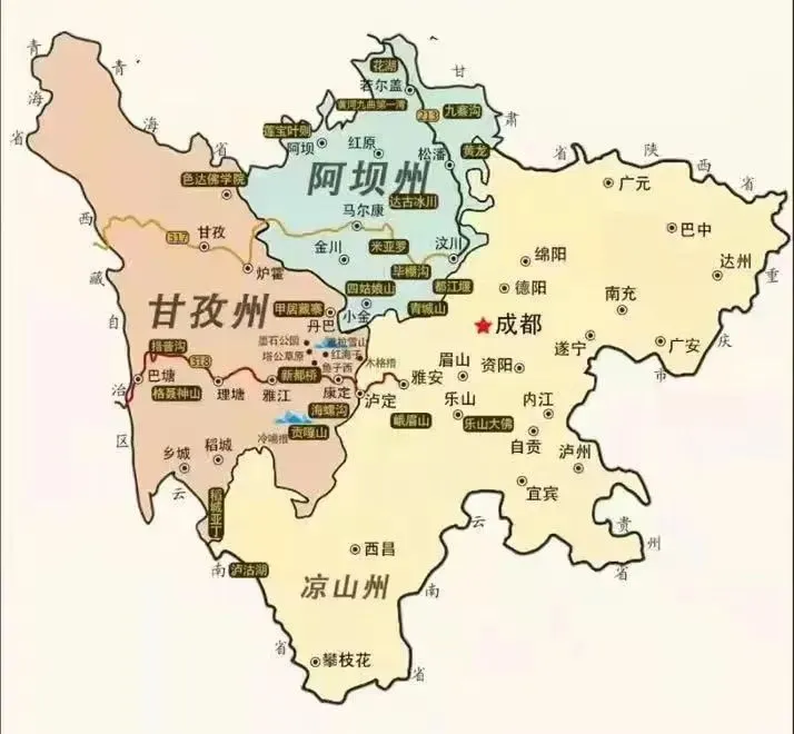 或许大家对川西这个词比较陌生,哈哈哈那就先提一句。广义上的川西现指成都平原以西的地区,即四川省阿坝州和甘孜州等高原藏区,狭义上的川西一般说是指以甘孜州川西高原为主的区域。