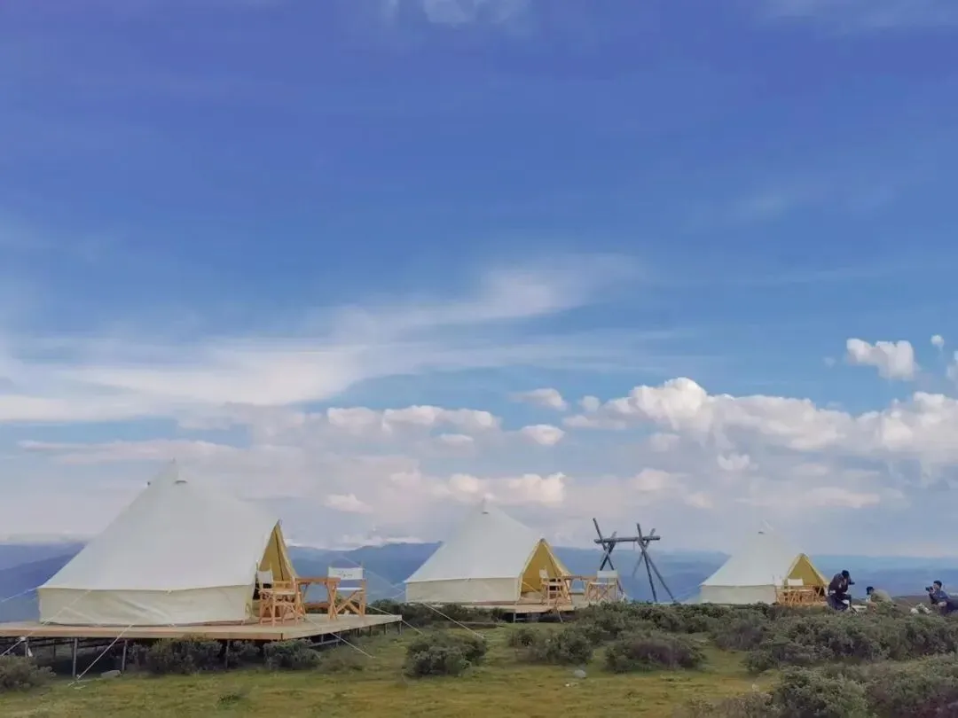 这里可以体验户外露营最天然的“观星台”,白天你能一览众多雪山的真容,看白雪皑皑晨雾缭绕。黄昏时分坐着秋千看日落霞光,欣赏连绵的金色雪山,夜晚还有肉眼可见的大片星空。感受自己与天空的距离是这样的近,仿佛伸手就能抓到一颗星星,鱼子西的烂漫在日出和日落。