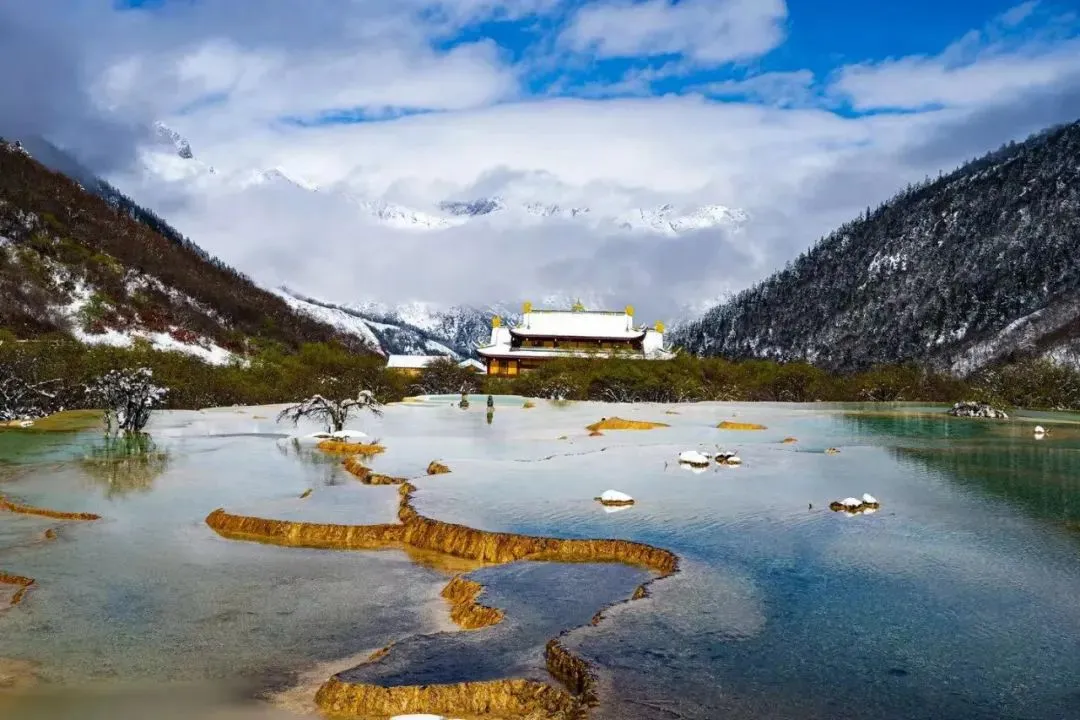 黄龙寺:就在五彩池的下方,在这里找到内心的平静,抬头即可看见雪皑皑的玉翠山和顶峰雪宝顶