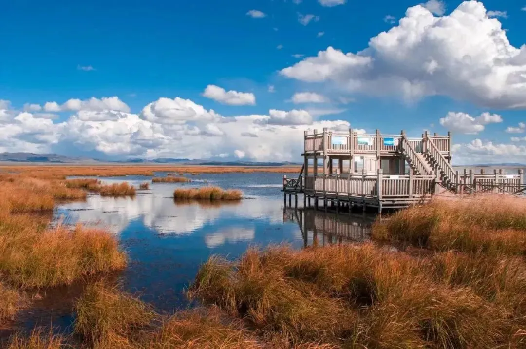 时至今日,鲜有人知的花湖依旧神秘衿贵绽放着自己独有的美丽。无垠的草原、亘古不变的小木亭子、悠长的栈道、大片的湖面还有成群的黑颈鹤,从花湖归来你的相册都是这样的“单调”“一尘不变”,却永远让人一见倾心,别无选择。