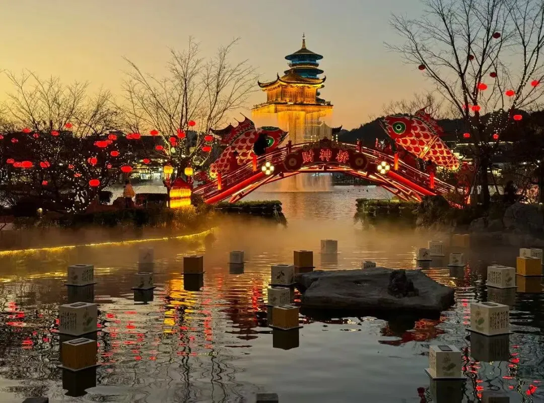 婺女洲位于江西婺源,是以婺女飞天传说为核心、融合新式徽派建筑风格的景区,这里有古色古香的建筑、灵动的水景,夜晚灯光亮起时更显梦幻,是体验徽州文化与休闲度假的好去处。