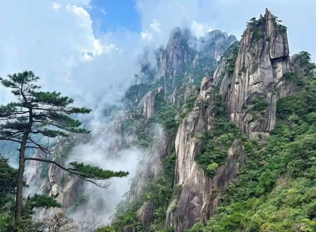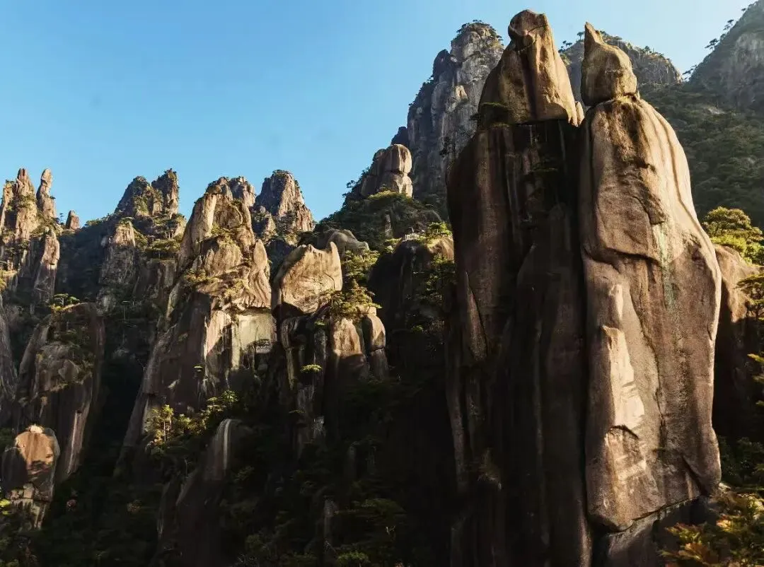 三清山位于江西上饶,是道教名山,以独特的花岗岩地貌闻名,山峰奇秀、植被繁茂,云海、日出等自然景观壮美,兼具自然与人文之美。