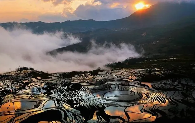 1、梯田由于是在大山里,比较潮,所以山里多云雾,容易下雨,看日出最好是选择头一天是晴天,第二天看到日出的概率大,整个梯田呈现出金黄色的光芒,非常好看!