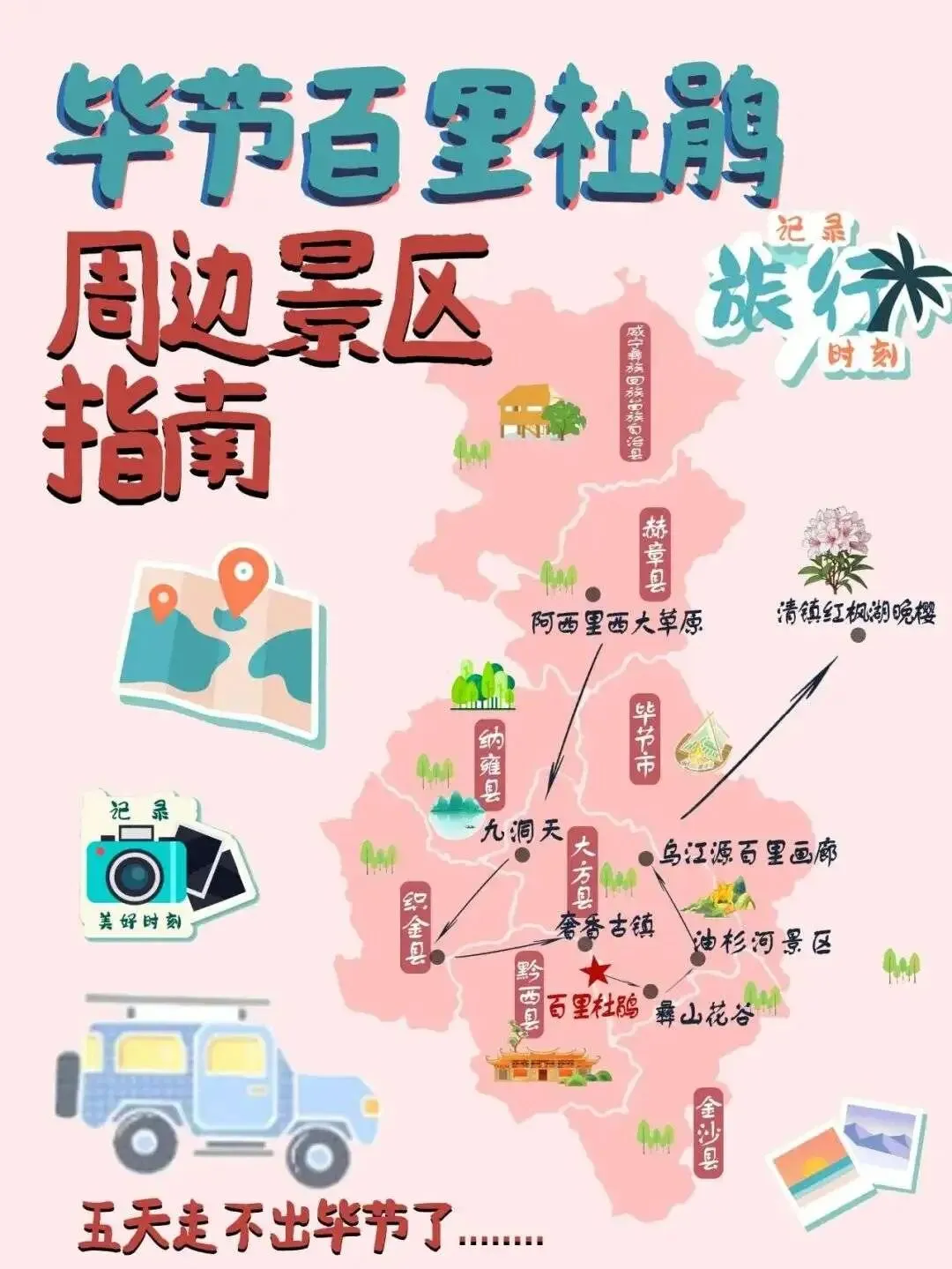当.地人提醒我.,三.月底四月初花.开得最.好,别赶.清.明假.期。从毕.节市区开车过去一个多.小.时,景区里走路多,.穿双舒服的鞋。烙锅、豆干火锅、威宁.火腿.,这些是毕节特.色.,酸汤鱼.也好吃。