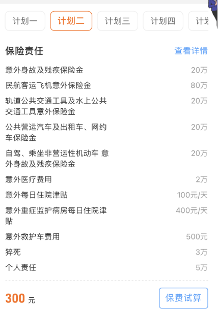 因为旅行险既可以提高额度,还有救援责任,参考产品和责任如下: