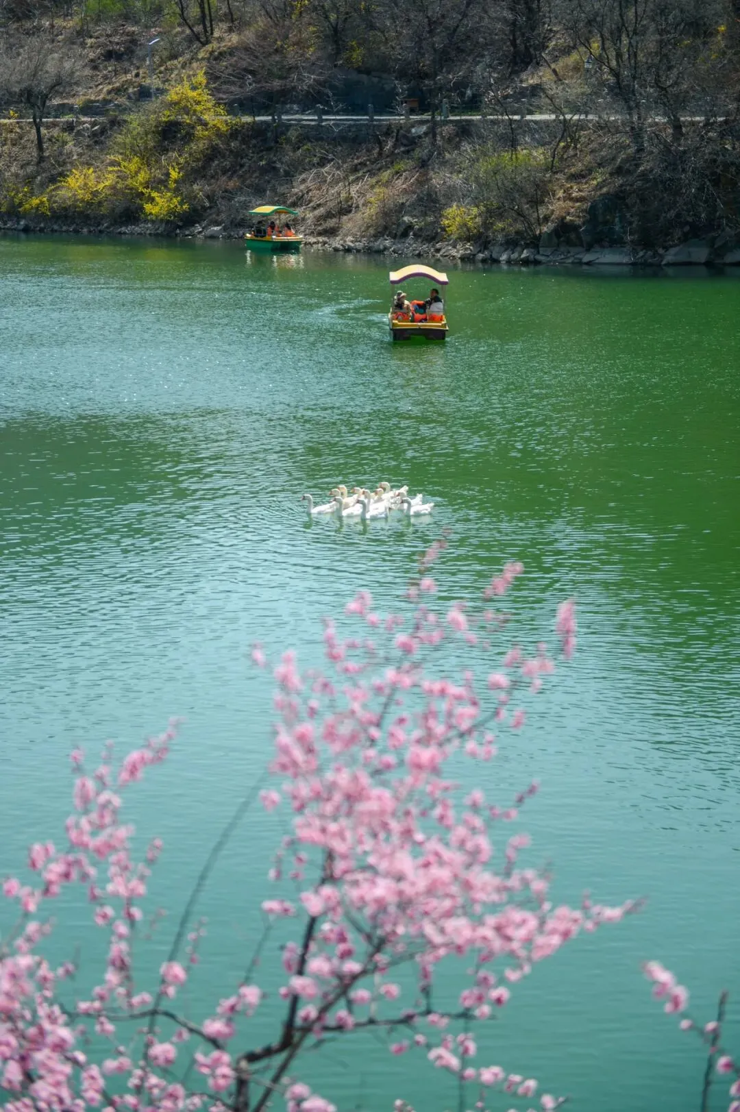雪野湖周边:桃花、梅花、迎春花、连翘等(3月中下旬至4月中下旬)