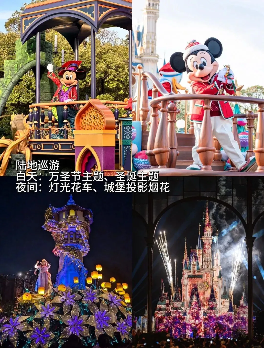 白天和晚上都有,接下来还会有圣诞节和跨年主题巡游