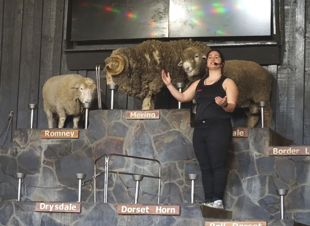 在牧场的表演区,孩子们欣赏到了精彩的剪羊毛表演。这些表演不仅展示了新西兰农牧产业的精湛技艺,也传递了人与自然和谐共生的理念。