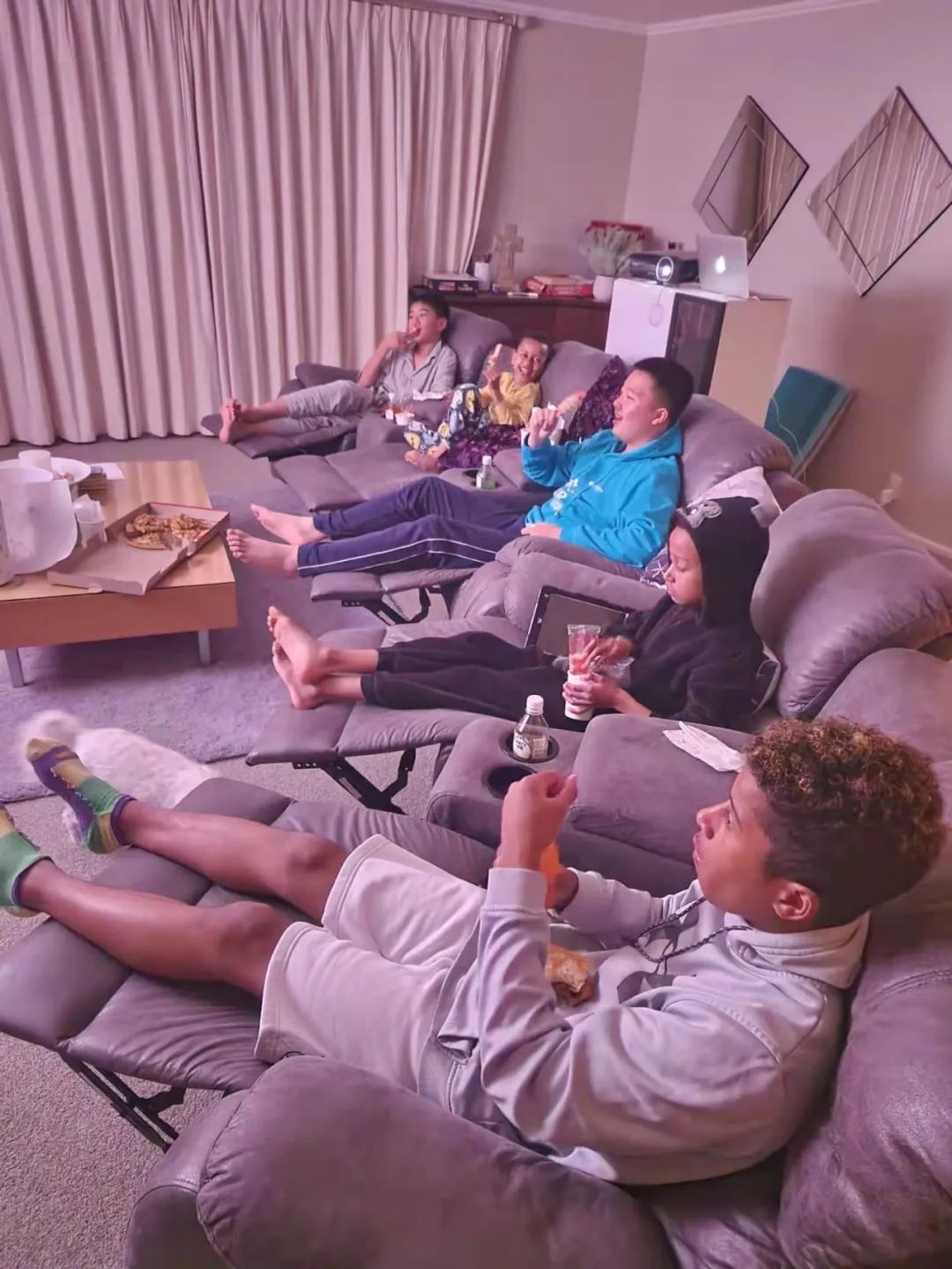 ▲寄宿家庭的家庭影院,孩子们和寄宿家庭一起观影