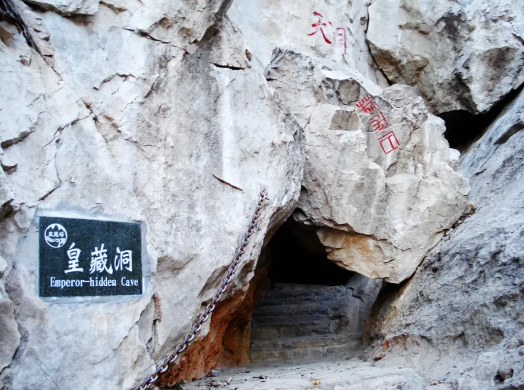 下午:皇藏峪+天门寺:抵达东门→乘观光车直达瑞云寺→拔剑泉→皇藏洞→瞭望塔→观景台→下山从东门前往天门寺→天门寺游览(古寺、晒书台、五蹬石门)→返回山脚,品尝皇藏峪蘑菇鸡