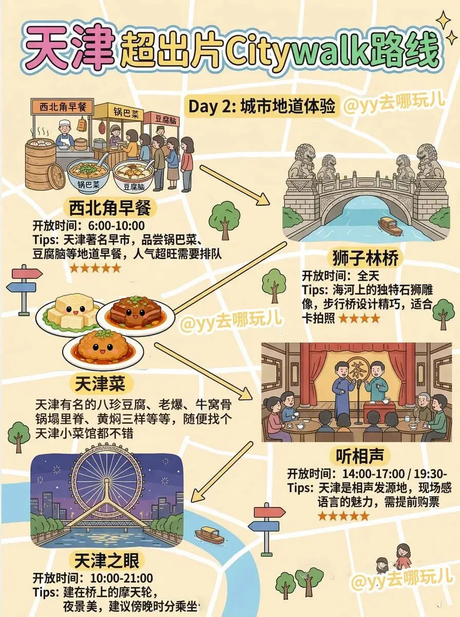 ✅DAY2:西北角早餐 → 狮子林桥 → 听相声 → 天津之眼