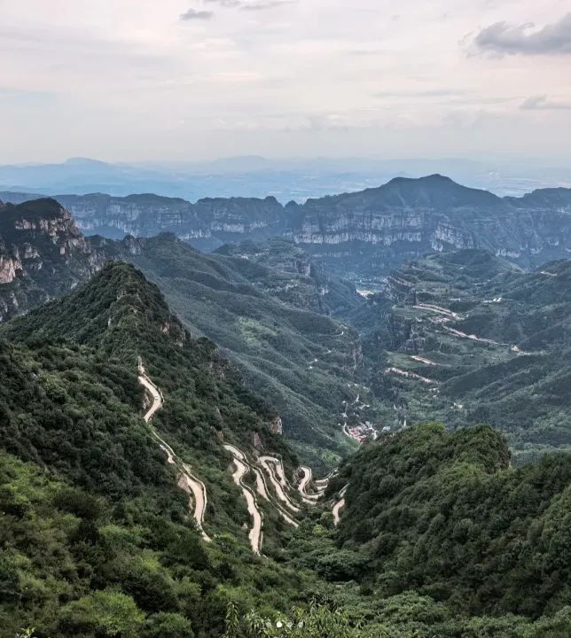 壶关九道湾:太行盘山公路的精华路段,九曲十八弯、蜿蜒盘旋于山间,自驾其间,弯道起伏、视野开阔,一边是绝壁悬崖,一边是群山叠翠,既有驾驶的乐趣,又有绝美的风光,尽显太行天路的险峻与壮美。