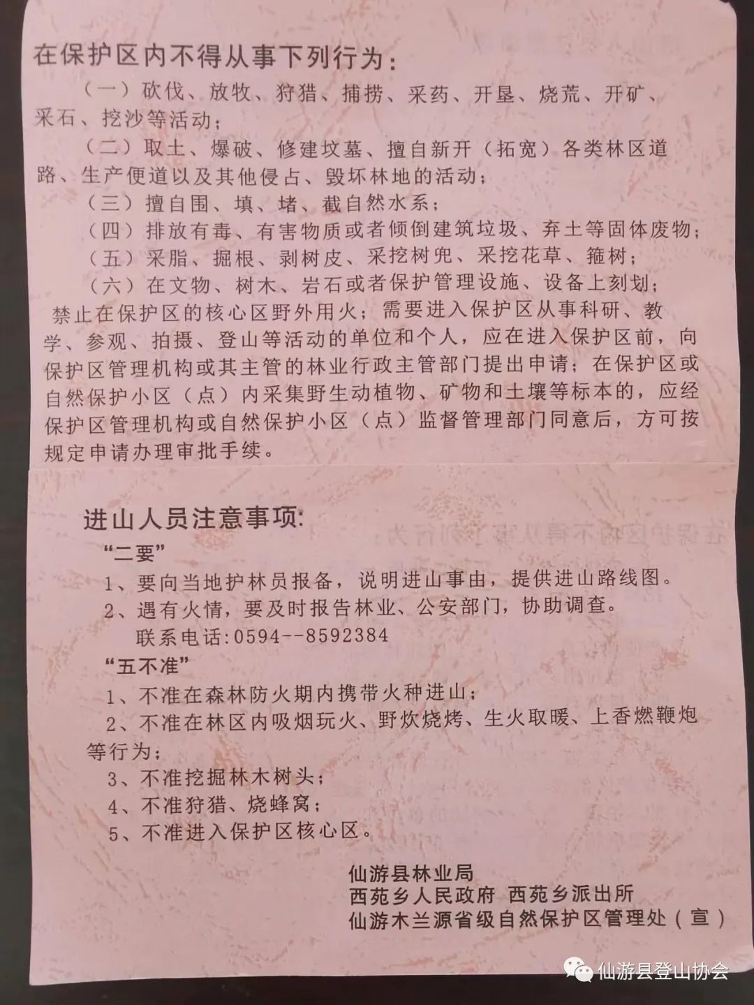 2、报名参加仙游县登山协会组织的活动,除非个别队友书面提出,否则一律视为报名者同意:“仙游县登山协会有权将可能含有活动参加者的肖像图片用于协会的非商业性的宣传免费使用,并不再付酬”。如涉及个人隐私,可以联系协会,协会可及时删除。