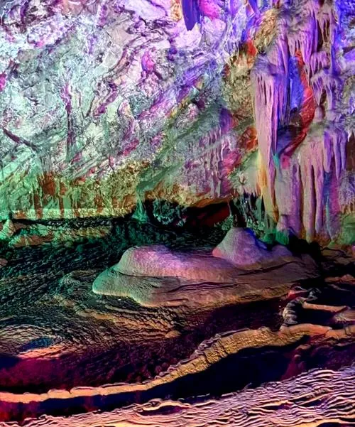 洞里灯光布置得不错,不是那种五颜六色的俗气感,而是暖色调的灯光,能把石头的质感凸显出来,你会看到那些钟乳石的纹理和光泽,那种细节是照片拍不出来的,必须亲眼看。