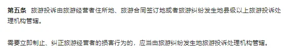 《办法》第五条扩展了旅游者投诉的受理机构,在旅游经营者住所地、合同签订地之外,增加了旅游纠纷发生地,让旅游者可以“就近投诉”“马上投诉”,有利于更好保障旅游者权益。
