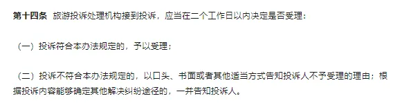 《办法》明确了投诉受理责任和时限,可以降低旅游者投诉的时间成本。第七条明确旅游投诉的“首接责任制”,可以有效降低旅游者的维权门槛和时间成本。第十四条将旅游投诉处理机构接到投诉并作出是否受理的决定时间从5个工作日缩短到2个工作日,有利于快速处理旅游者投诉,降低旅游者维权的时间成本,让旅游者放心消费,促进市场的良性运转。