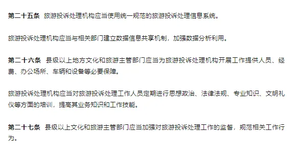 完善的管理制度、部门协同和保障机制是旅游投诉处理的基础。《办法》进一步优化行政部门处理旅游投诉的流程和方式,明确部门衔接流程,提升投诉的处理效率。
