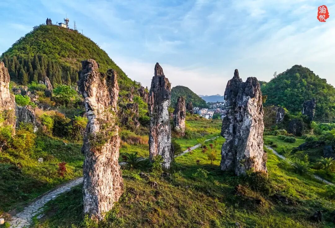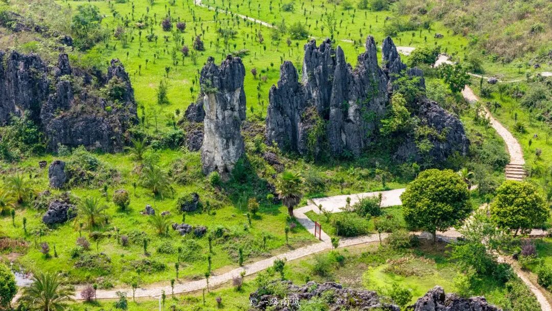 喀斯特峰林:景区地处世界地质公园核心区,拥有典型的锥状喀斯特地貌,峰林如笋,形态各异,连绵不绝,构成了一幅气势磅礴的山水画卷。