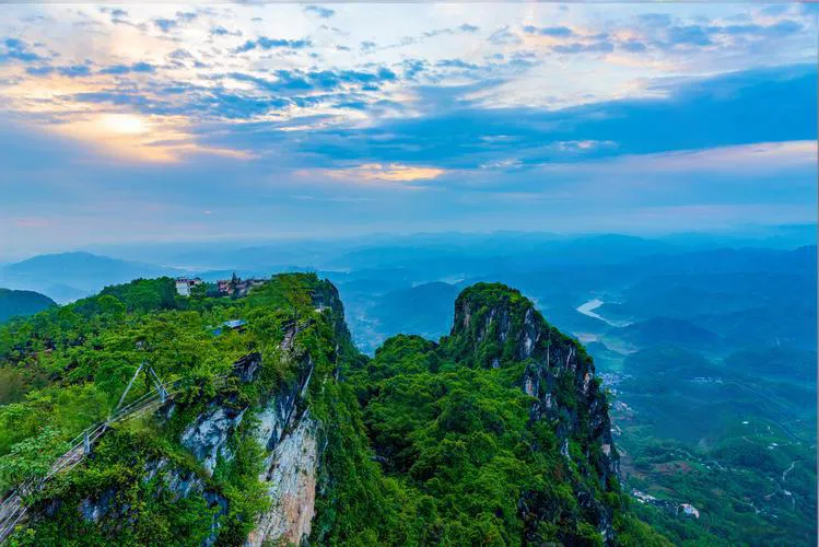 下午:前往双乳峰景区。这两座形似女性乳房的喀斯特山峰,被誉为"天下第一奇峰"。景区内设有观景台,可以从不同角度欣赏这一大自然的鬼斧神工。