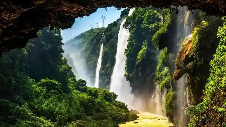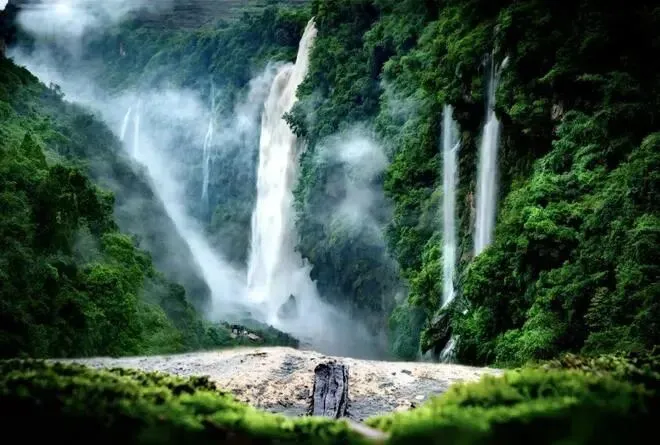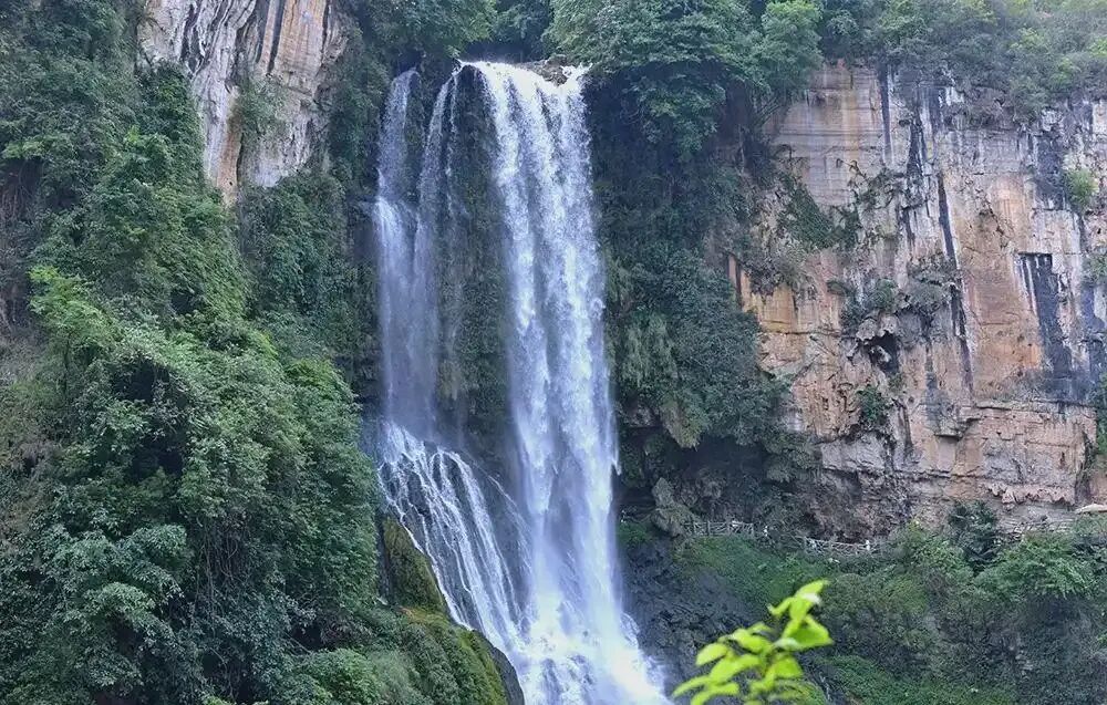 万马奔腾瀑布:瀑布高118米,宽38米,声势浩大,气势磅礴。