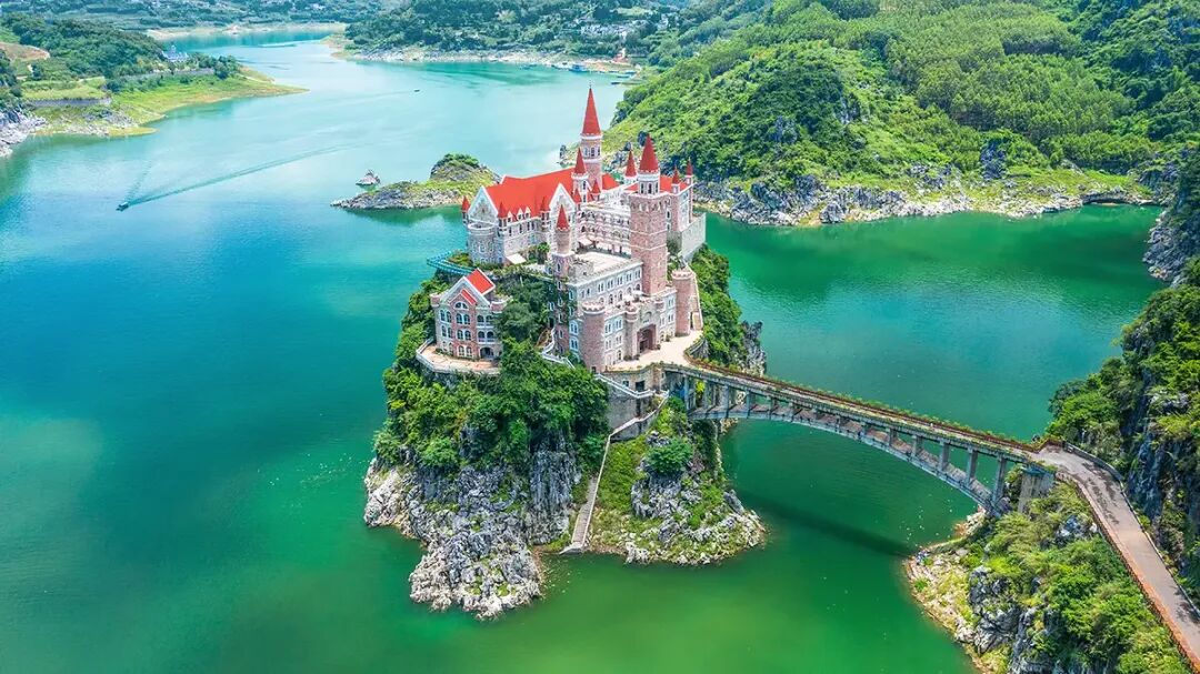 下午:驱车前往万峰湖景区。建议在红椿码头乘船游湖,欣赏湖光山色。位于湖边的吉隆堡是座欧式城堡,远远望去,如同童话世界,非常适合打卡拍照。