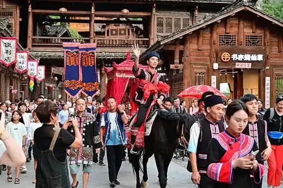 布依婚俗巡游:生动展示布依族生产生活场景和民俗风情风物,互动性强,氛围热闹。