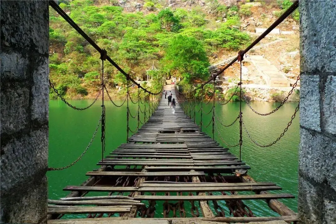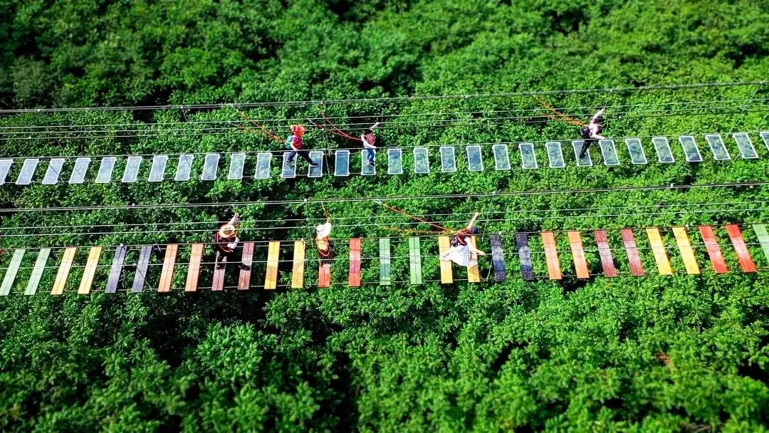 步步惊心网红桥:桥长168米、高88米,寓意“一路发”“发发”,分为实木吊桥和玻璃吊桥,挑战心理极限。