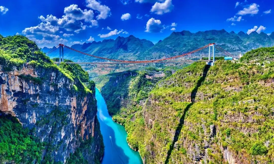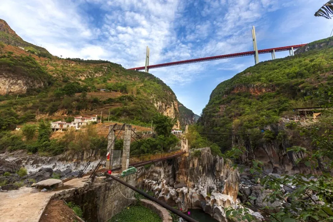 云端观景:大桥的桥塔顶部设有观光平台,以及配套的高空玻璃观光厅和观光电梯,让你可以站在“世界之巅”,俯瞰被誉为“地球裂缝”的花江大峡谷。