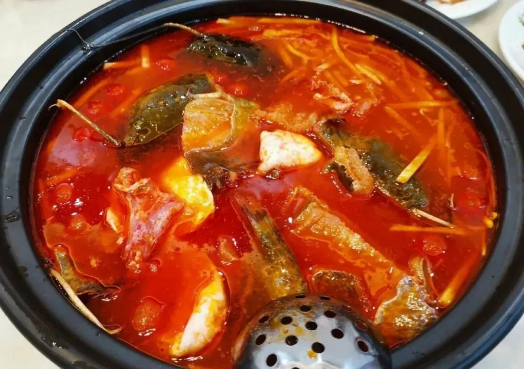 15、布依酸笋鱼:这道菜充分体现了黔西南"酸辣"的饮食底色。用山间小番茄和秘制酸辣椒熬成红汤,放入盘江活鱼和手工腌制的酸笋。