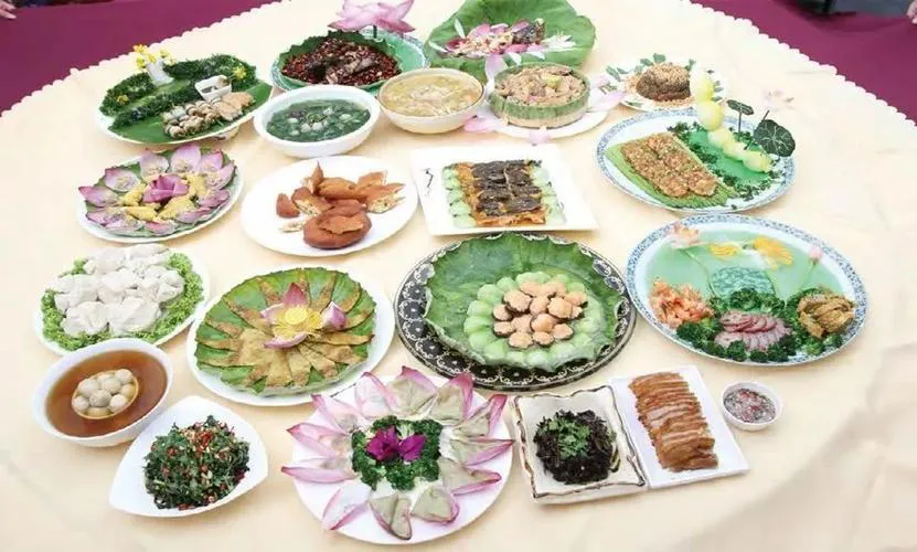 17、安龙荷花宴:以十里荷塘中盛产的优质荷花的叶、花、莲藕、莲子等为主要原料,由厨师经过煮、炸、煎、炒、蒸等工艺精心制作而成。