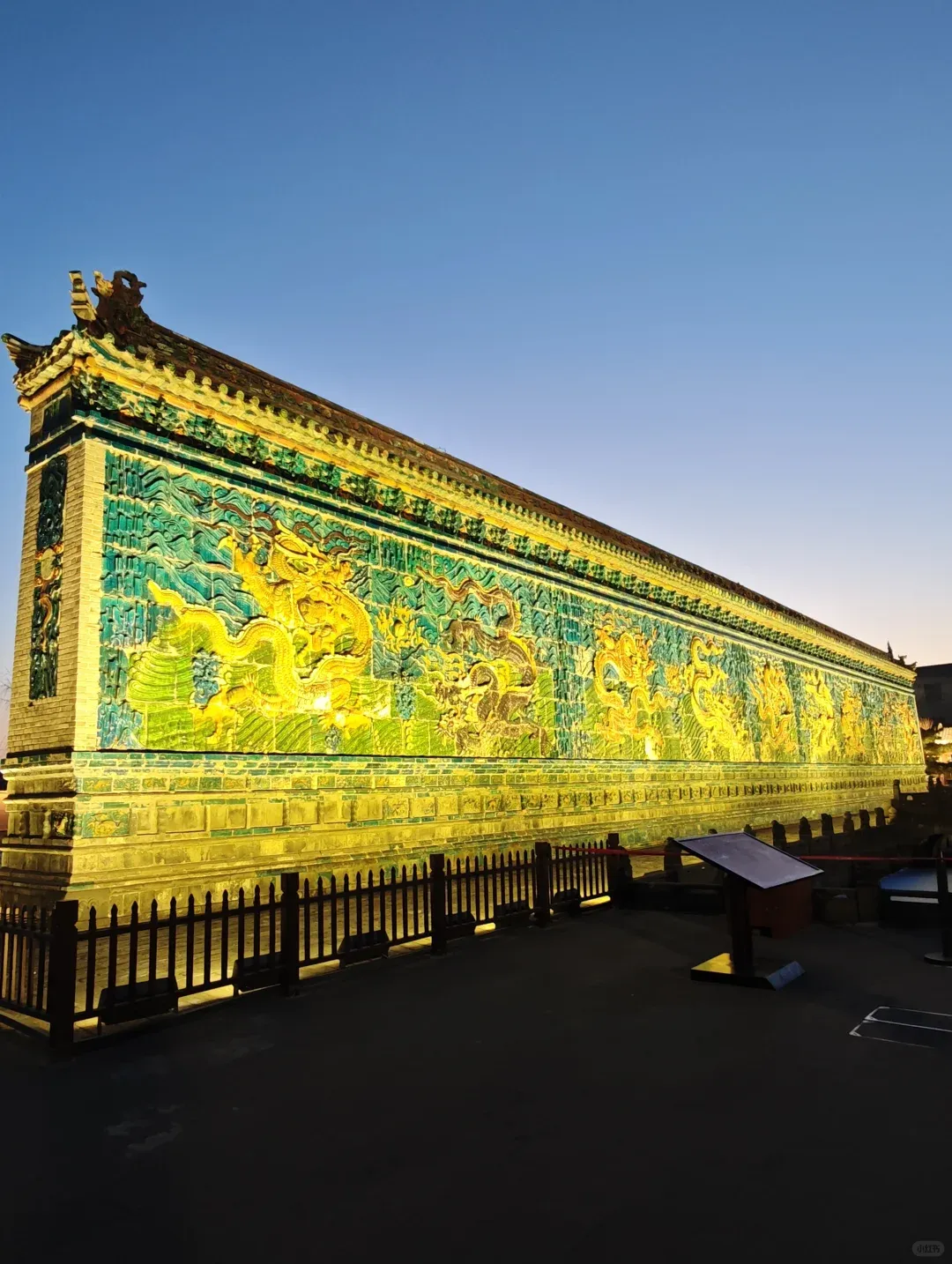 中国现存规模最大的琉璃九龙壁,九条巨龙栩栩如生,历经600余年色彩依旧鲜艳。