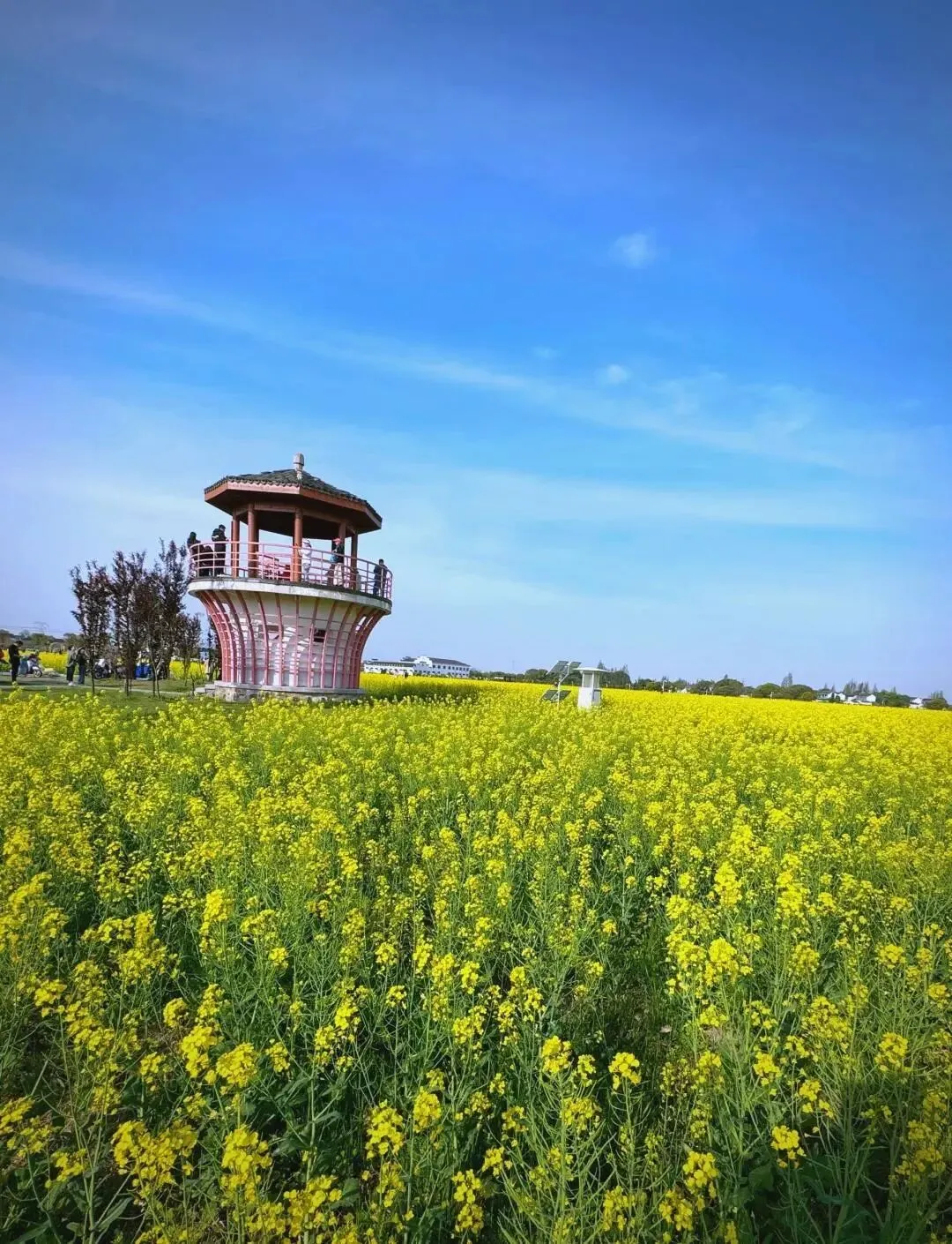 江阴狮山湖:油菜花海里藏着惊喜,独竹漂、油纸伞道、风车长廊、桃花市集,游乐项目多,置身花海,心灵都被净化。