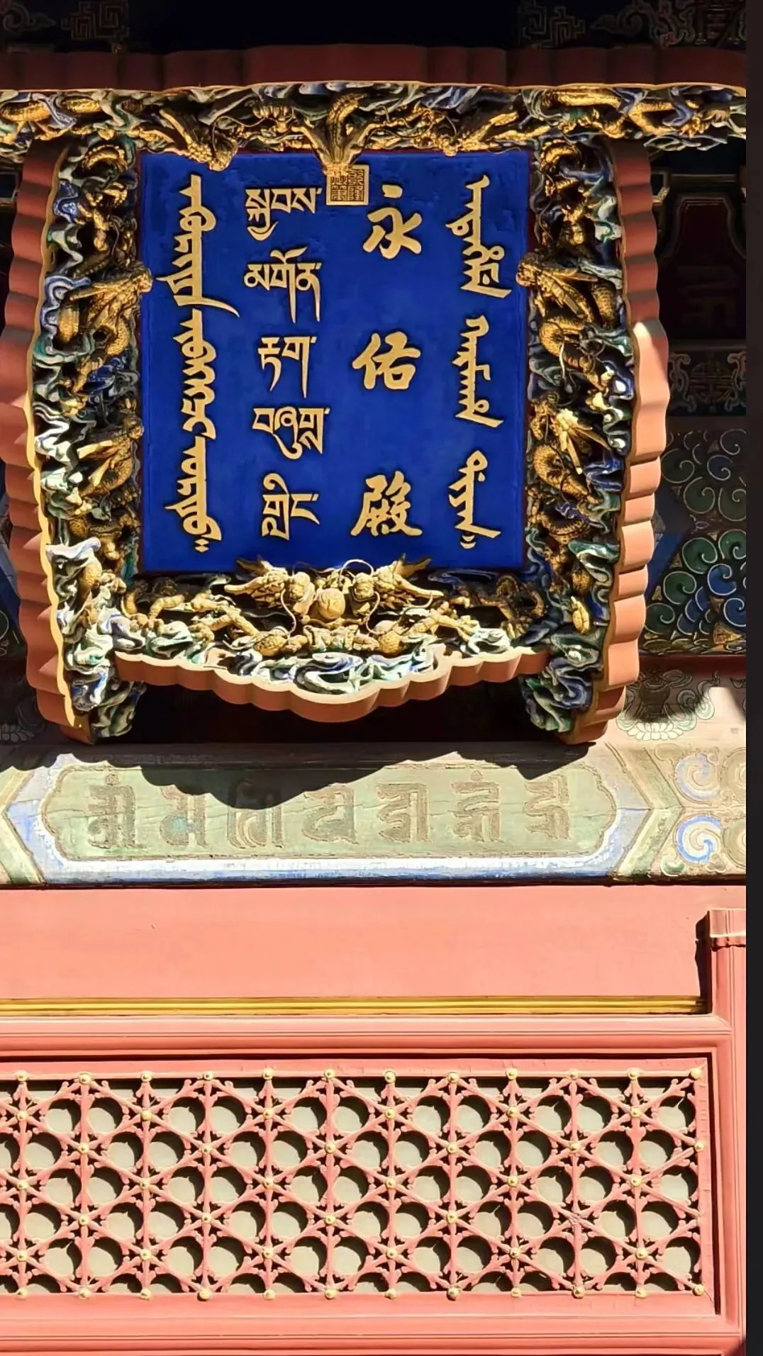 永佑殿:殿中虔诚供奉着无量寿佛与药师佛,庄严肃穆。殿内那楠木打造的佛龛,以精湛技艺透雕出99条云龙,每一条都栩栩如生、气势非凡,为殿堂增添了浓郁的神秘氛围。