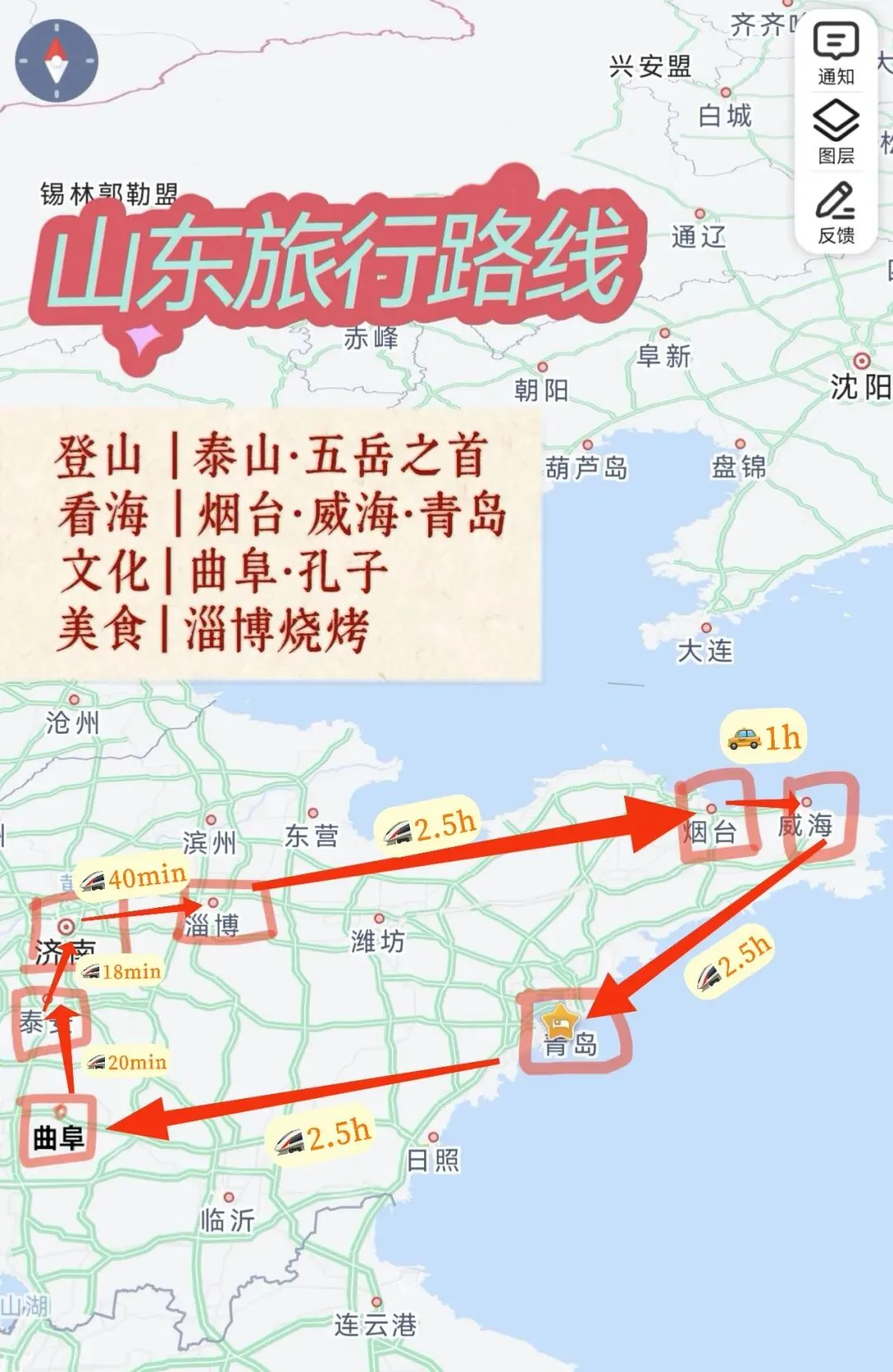 🚩城市: 济南—淄博—烟台—威海—青岛—曲阜—泰安