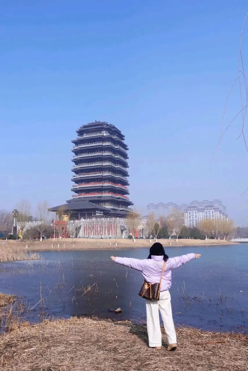 自然睡醒、上午去了“海岱楼”,途中被冻住的湖吸引住了、看着很舒服。到了海岱楼、逛了最美书店(钟书阁)。