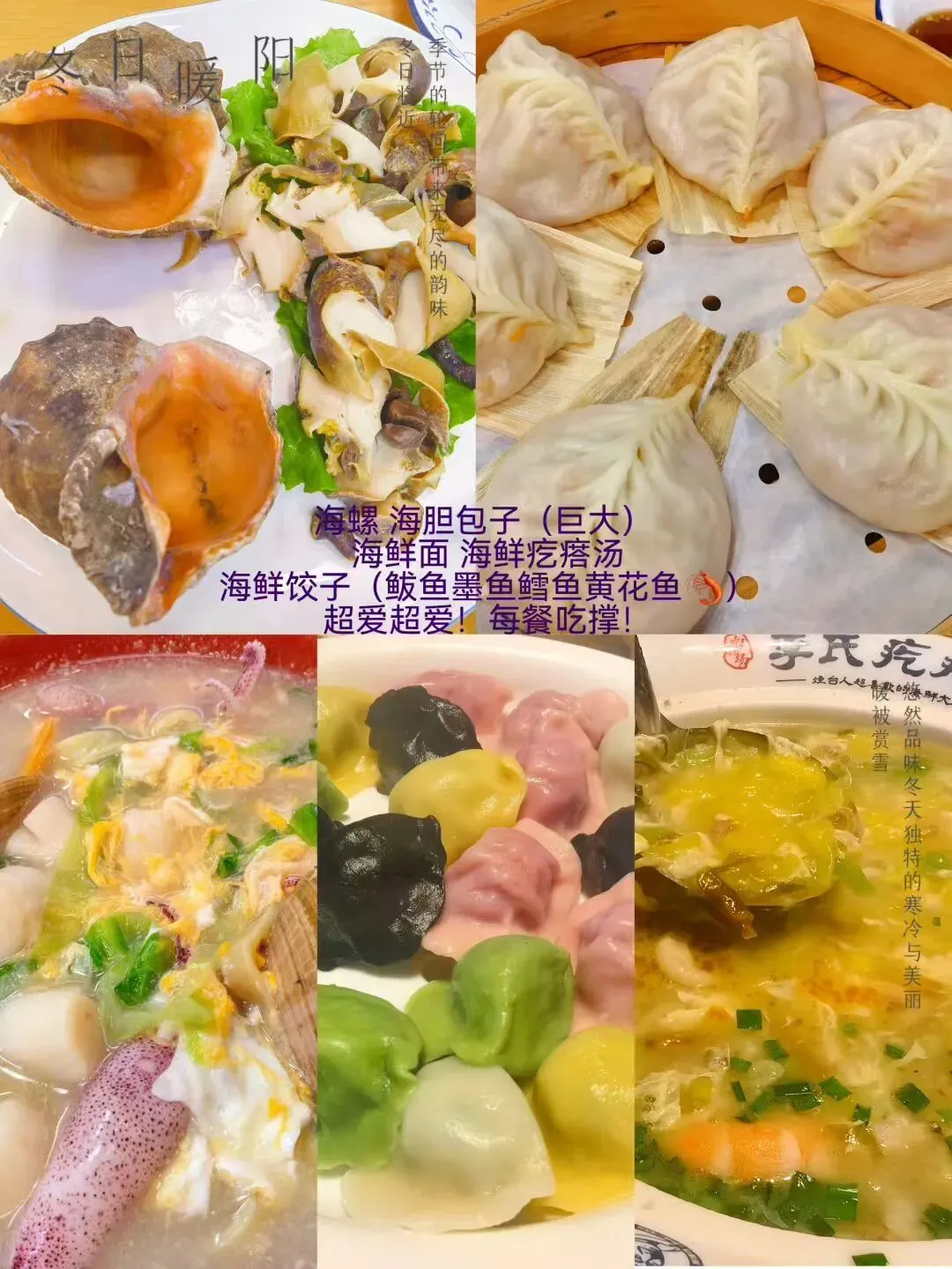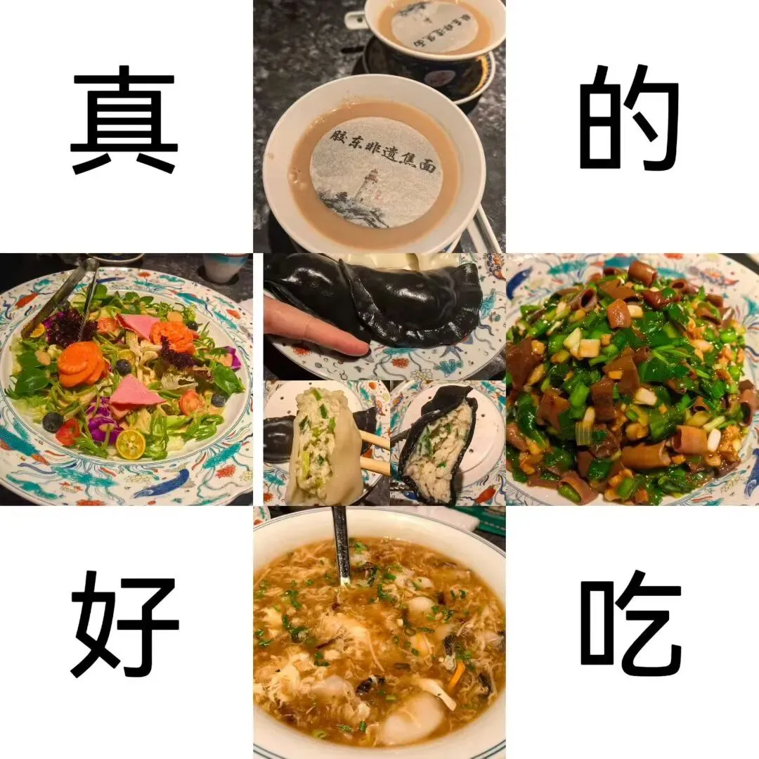 济南鲁菜、淄博烧烤、烟台海鲜(海肠捞饭、各海鲜馅水饺、鲅鱼水饺、海鲜疙瘩汤)、青岛一厂二厂原浆啤酒、烟台油爆螺片、韩国烤肉、威海海鲜大锅、海星大餐……
